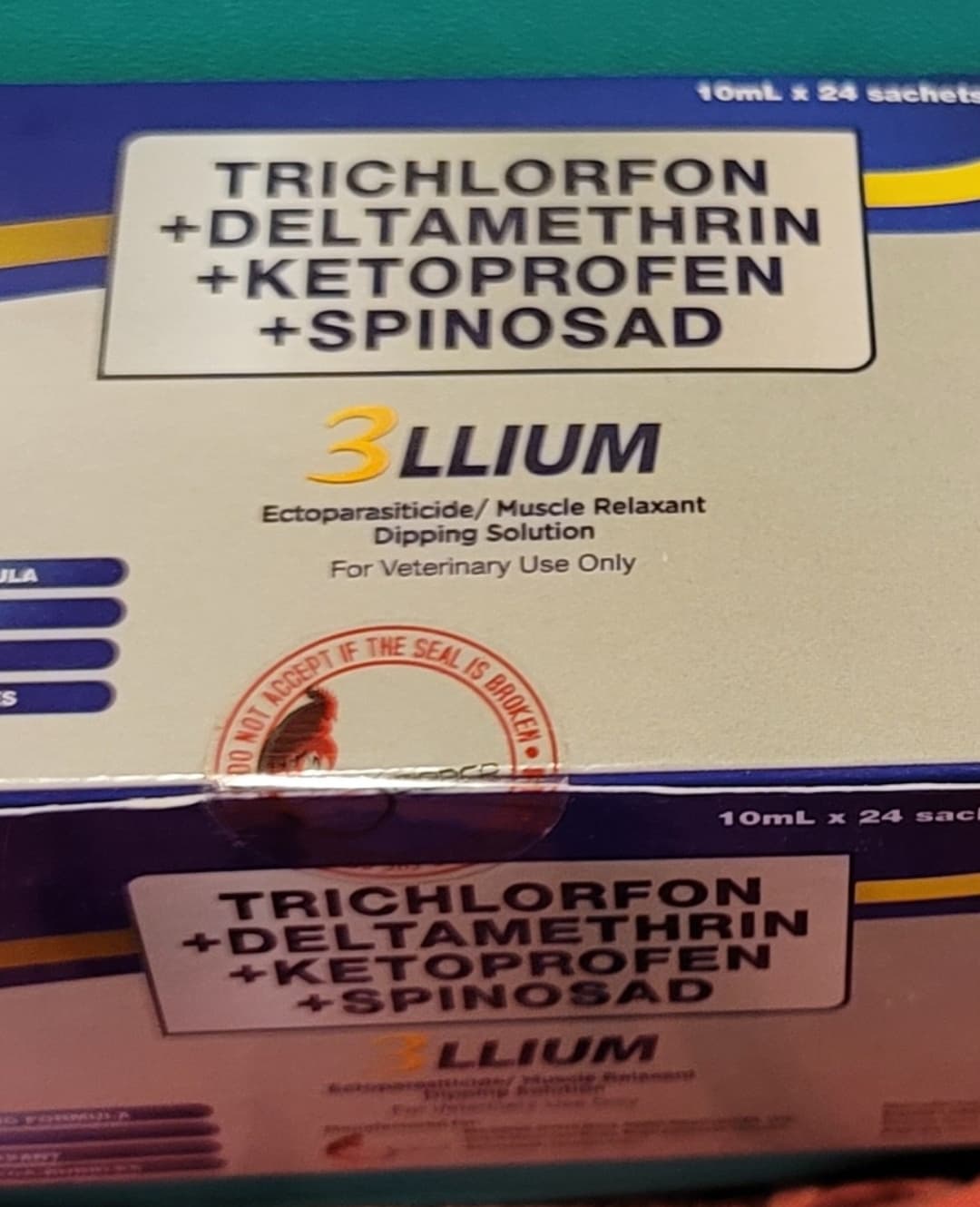 Trichlorfon + Deltamethrin + Ketoprofen + Spinosad