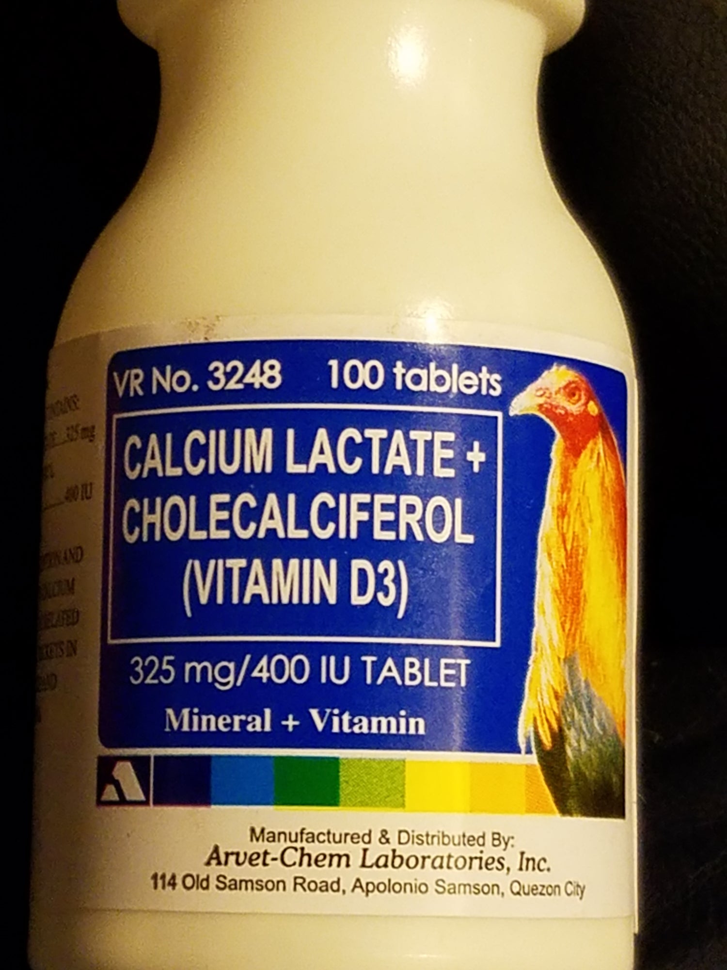 For the prevention and treatment of Calcium and Vitamin D3 related deficiencies, rickets in fighting cocks and racing pigeons.